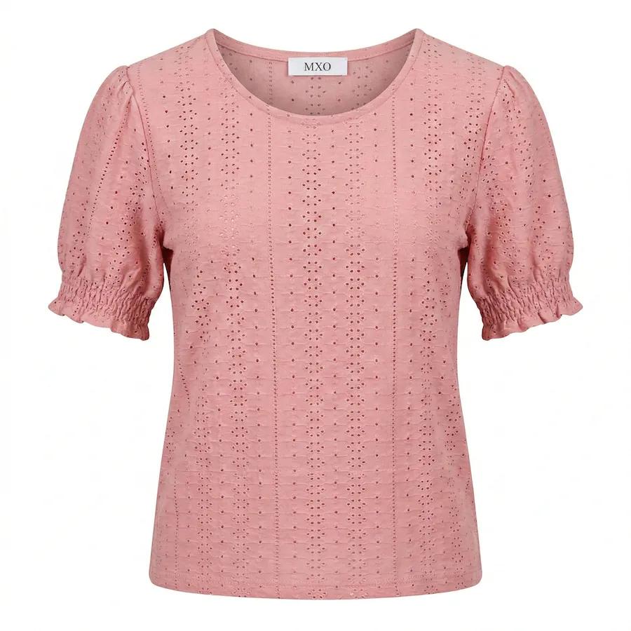 MXO Dames Shirt roze – Broderie Kant met Korte Pofmouw
