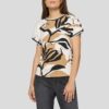 Voeg een artistieke touch toe aan uw outfit met dit bijzondere shirt van Rabe. Dit model is allesbehalve standaard: terwijl de voorzijde pronkt met een prachtig, abstract bladmotief in camel en zwart, verrast de achterzijde met een tijdloze horizontale streep. Het shirt is uitgevoerd in een zijdezachte blend van katoen en modal, waardoor het niet alleen prachtig valt, maar ook koel en comfortabel aanvoelt op de huid.