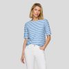 Rabe dames truitje met blauwe en witte strepen, ronde hals en korte mouwenAlternative view of Rabe Truitje Blauw Wit Gestreept
