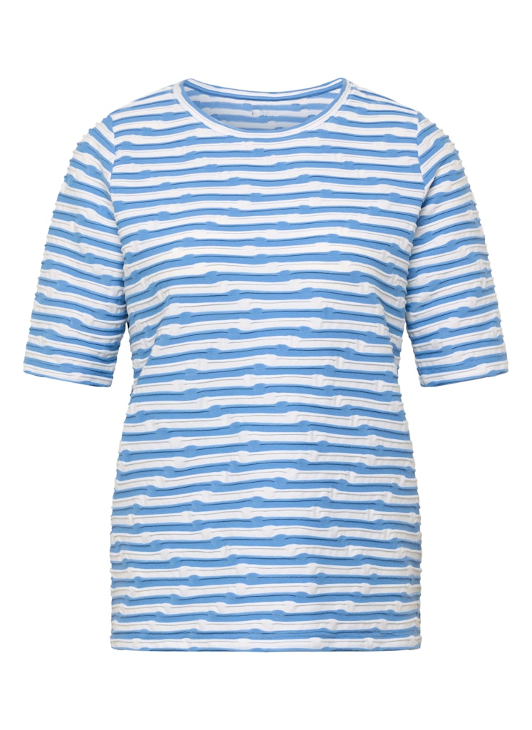 Rabe Shirt Lichtblauw Gestreept – T-shirt met Reliëf Structuur