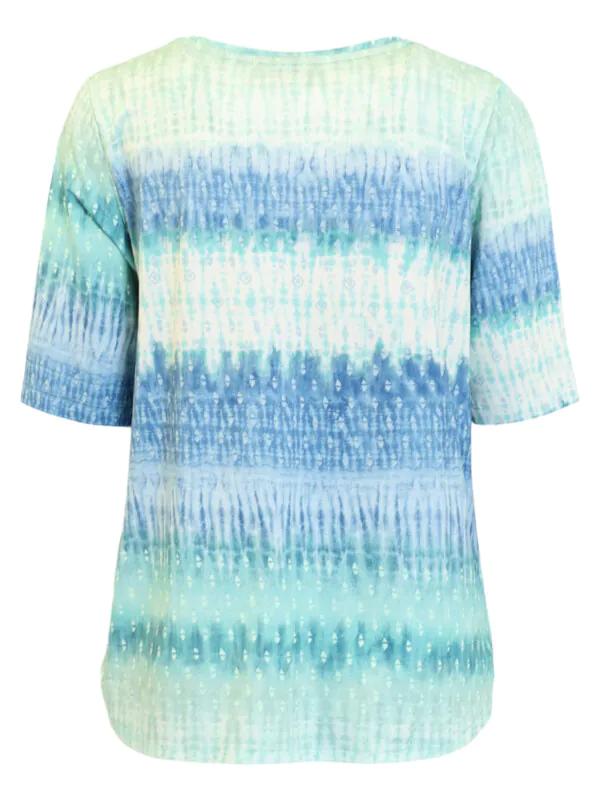 Dames shirt van Signature met horizontaal kleurverloop in mintgroen en blauw en een V-hals